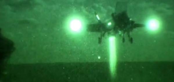 U.S. Marine Corps test pilot Lt. Col. Russ Clift performed the first F-35B night-time vertical landing aboard the USS Wasp off the Maryland coast last Tuesday, August 13, 2013. The F-35B replaces the aging AV-8B Harrier for the U.S. Marines and the Royal Navy.