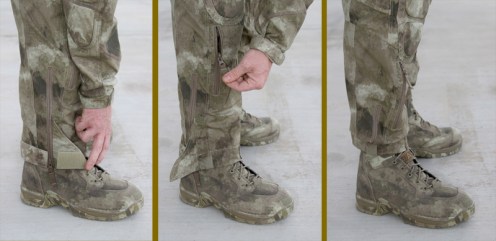 The boots use 10 eyelets per side with the bottom five being round grommets and the top five a closed speed lacing system. The boots are Airborne compliant since there are no open speed lace hooks. The top speed laces are not very speedy though with the laces provided. It takes a moment to put on and take off these boots since all of the top five eyelets need to be loosened up to get your foot in or out. For users who put on their boots at the beginning of a long operation and don’t take them off for 20+ hours it isn’t an issue. If you need to frequently remove and replace boots in a hurry this boot will be a challenge. In general the benefits of an Airborne compliant lacing system and great ankle support are worth it. I’m not in favor of a zipper side version since few of those work or last well.