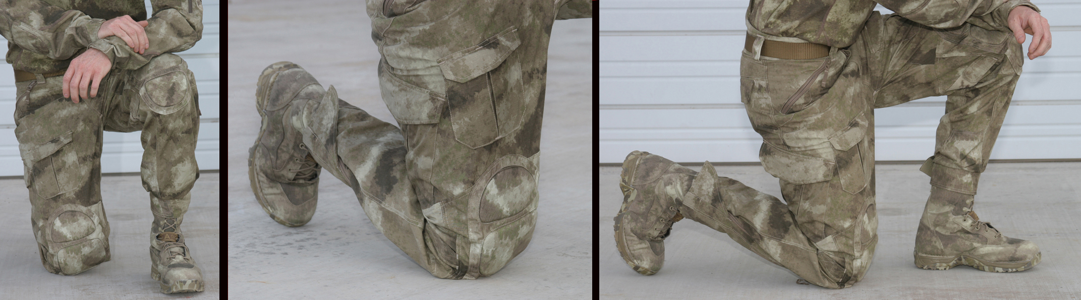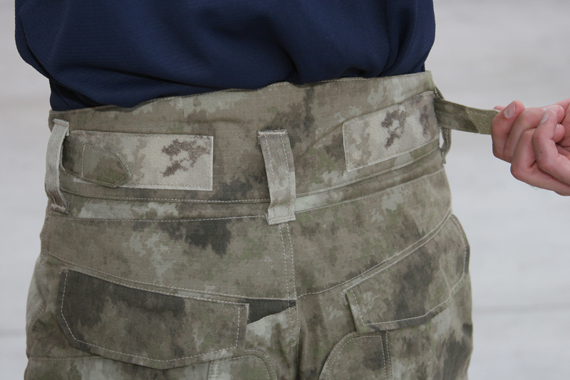 The upper cargo pocket also has an elastic drawstring inside to adjust the vertical position of the integrated knee pads on your leg.