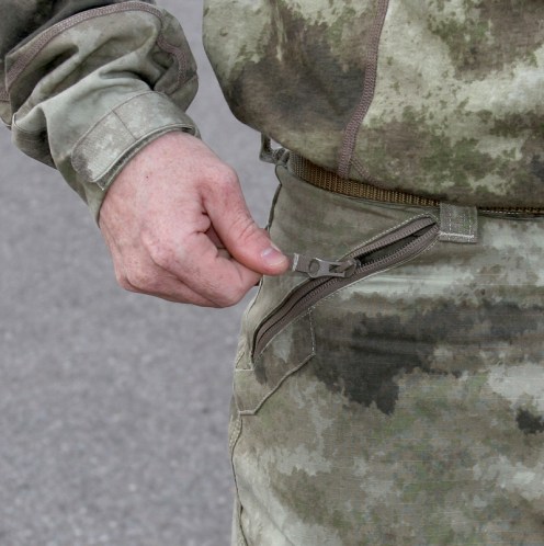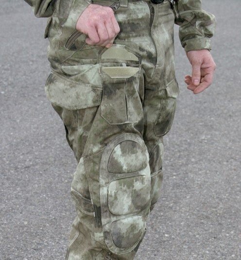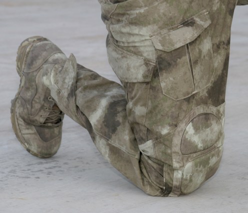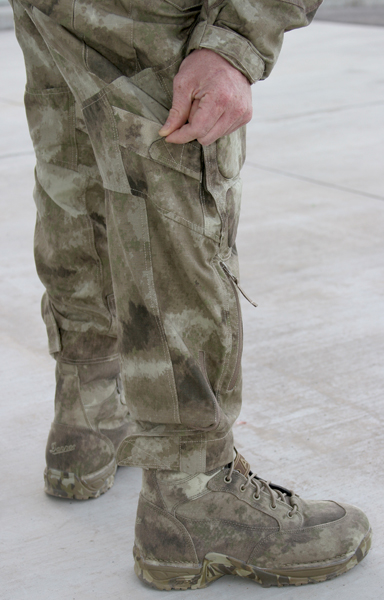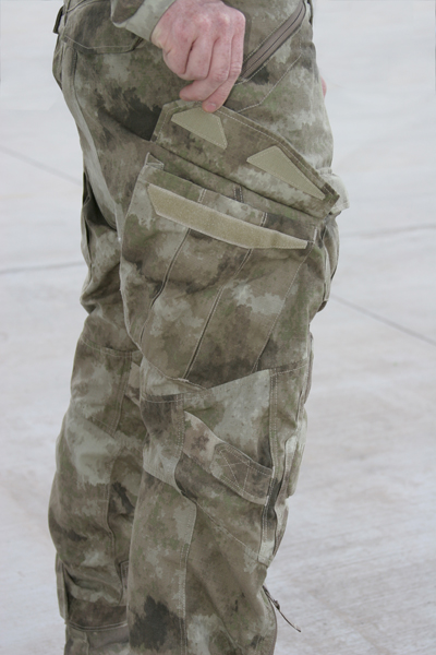 Two Velcro closures securely close the top cargo pocket flap. The shape and location of the pocket on the leg make retrieval of items easy in all positions including seated and facilitate fast running when loaded.