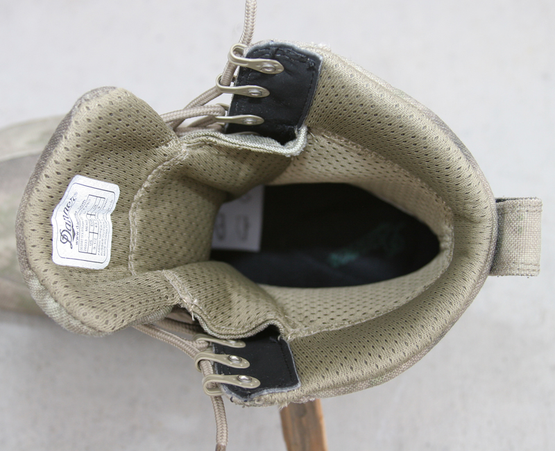 The top of the boot has a padded collar and a study 1.25 inch (3 cm) pull tab for donning. The tongue is built into the entire upper section with no opening at the side of the tongue. This design prevents entry of dust, sand and debris. It also prevents accidentally pushing the tongue down into the boot while donning. The liner of the TFX Hot Boots is a perforated moisture wicking mesh. The thoughtful design of the interior of this boot is one of the best I’ve worn.